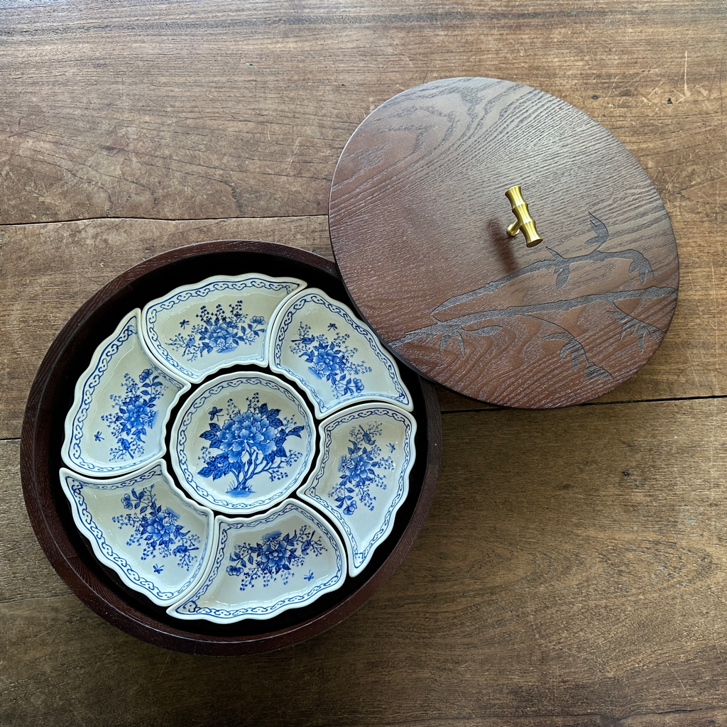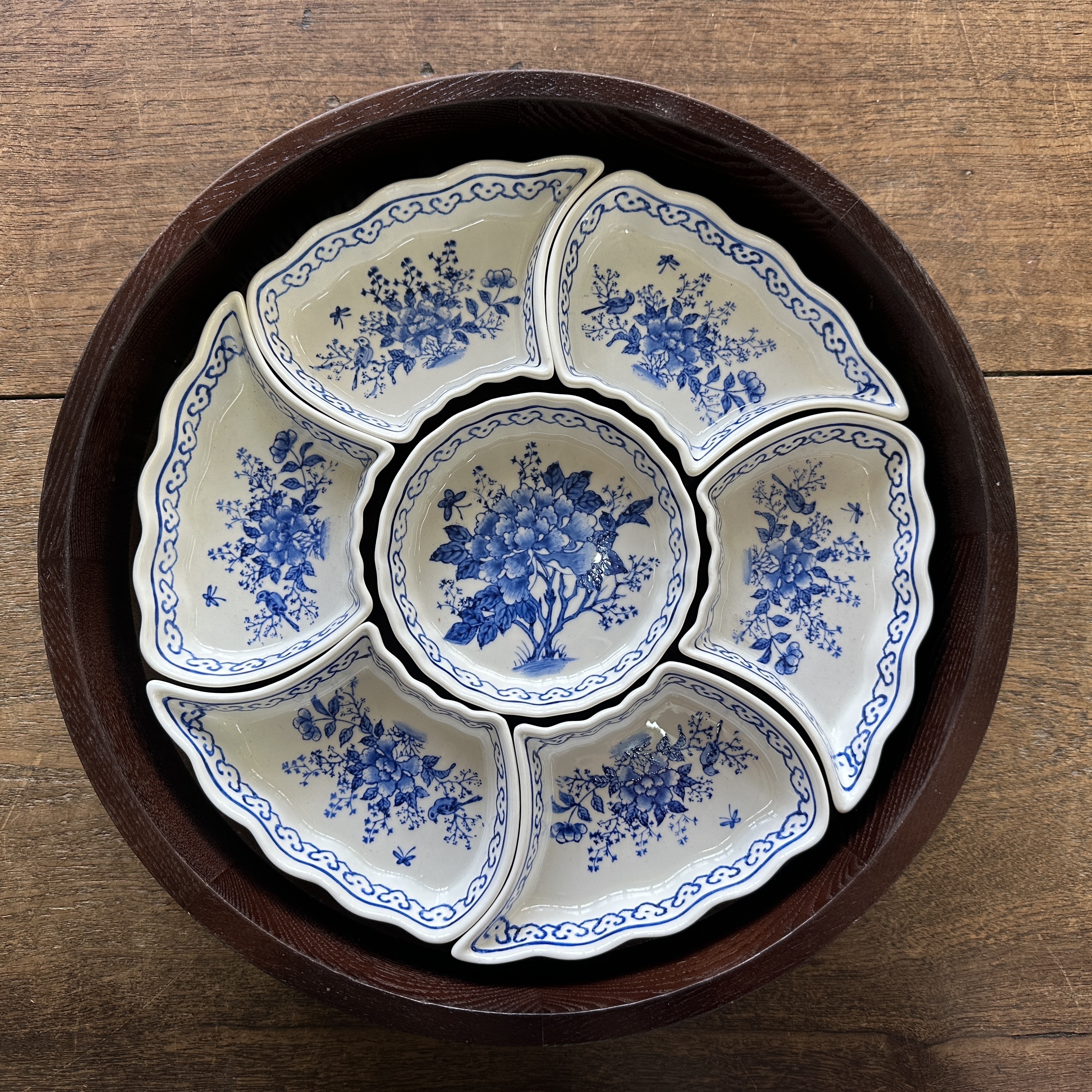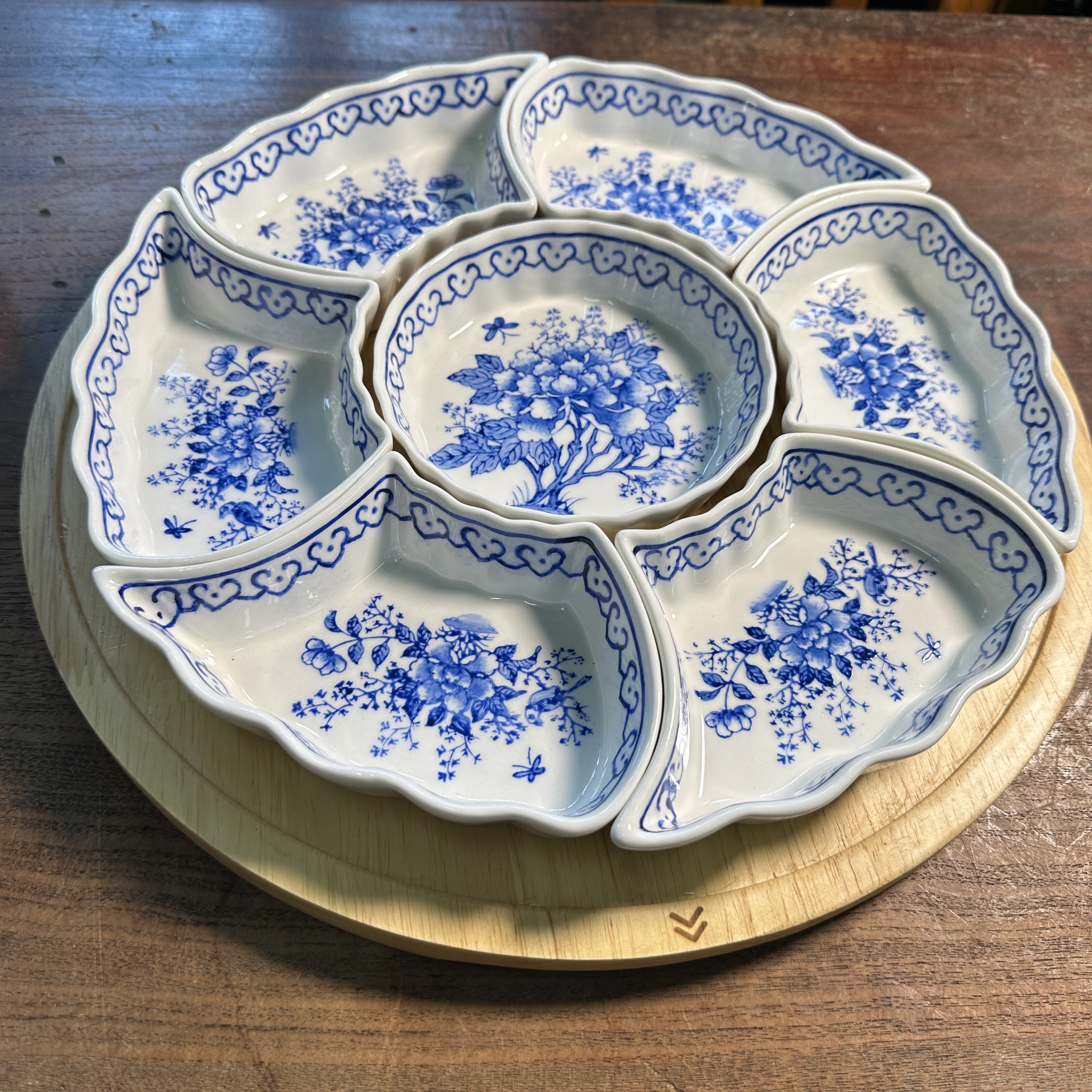 Hand painted blue peony candy tray set 廣彩藍牡丹糖果盤