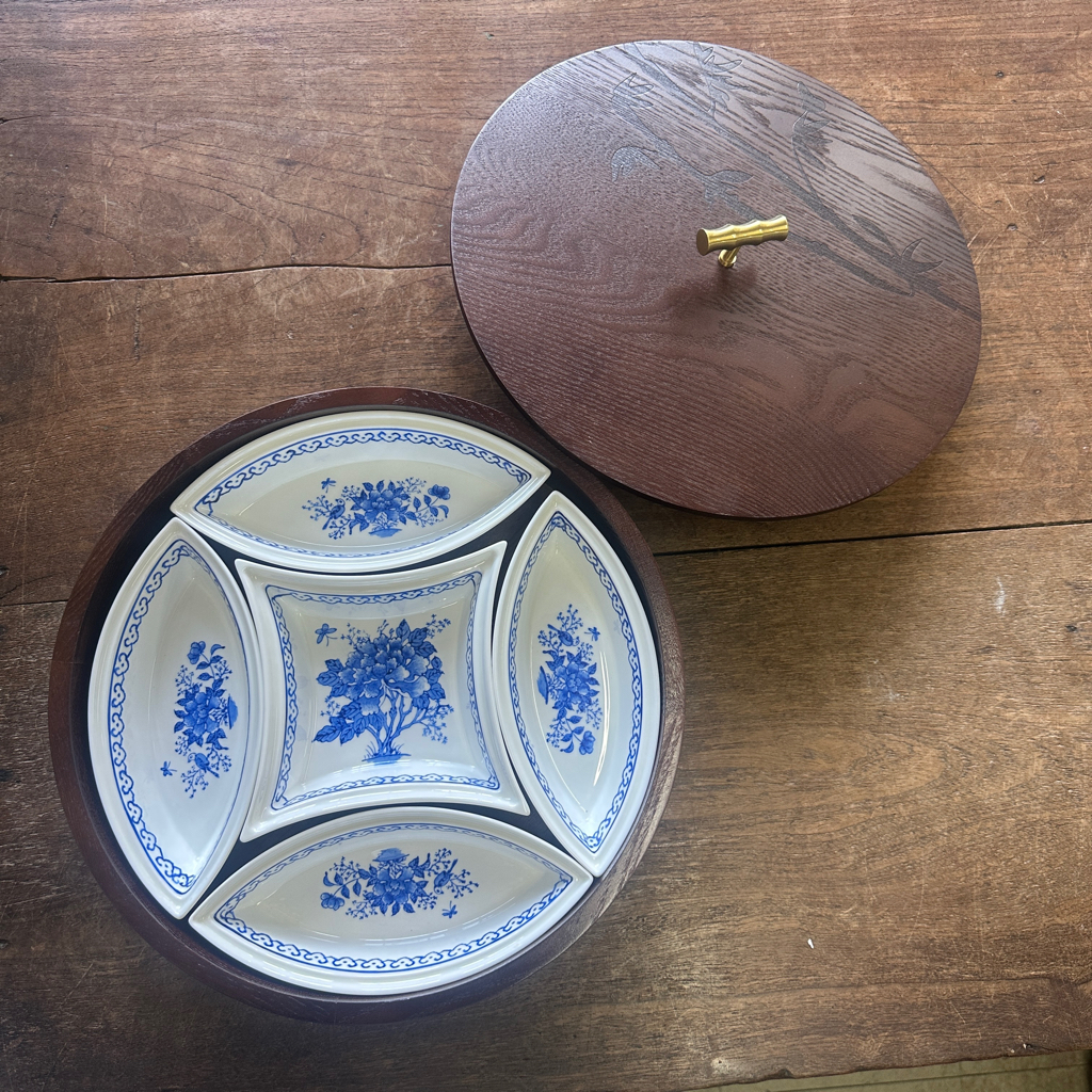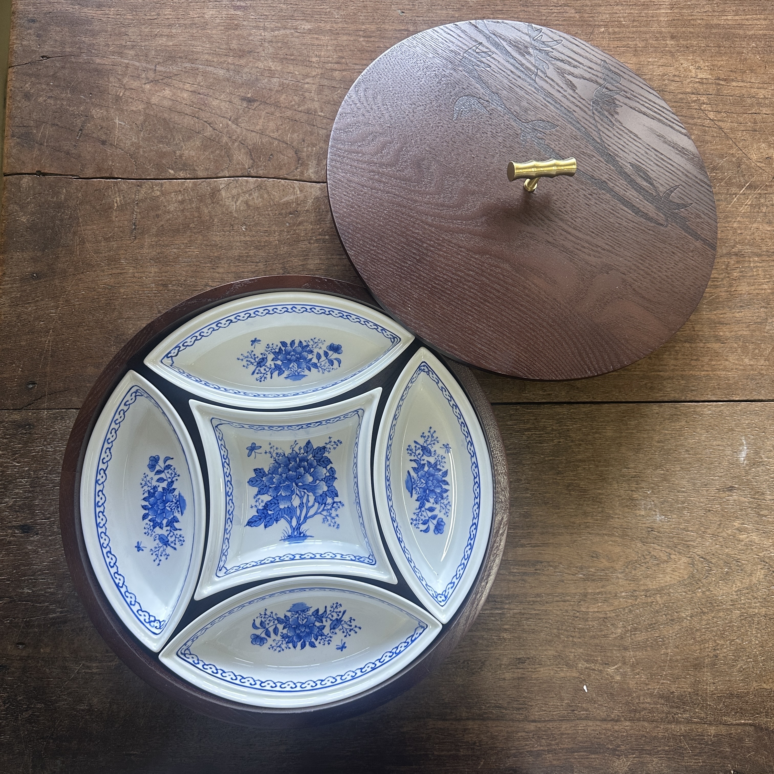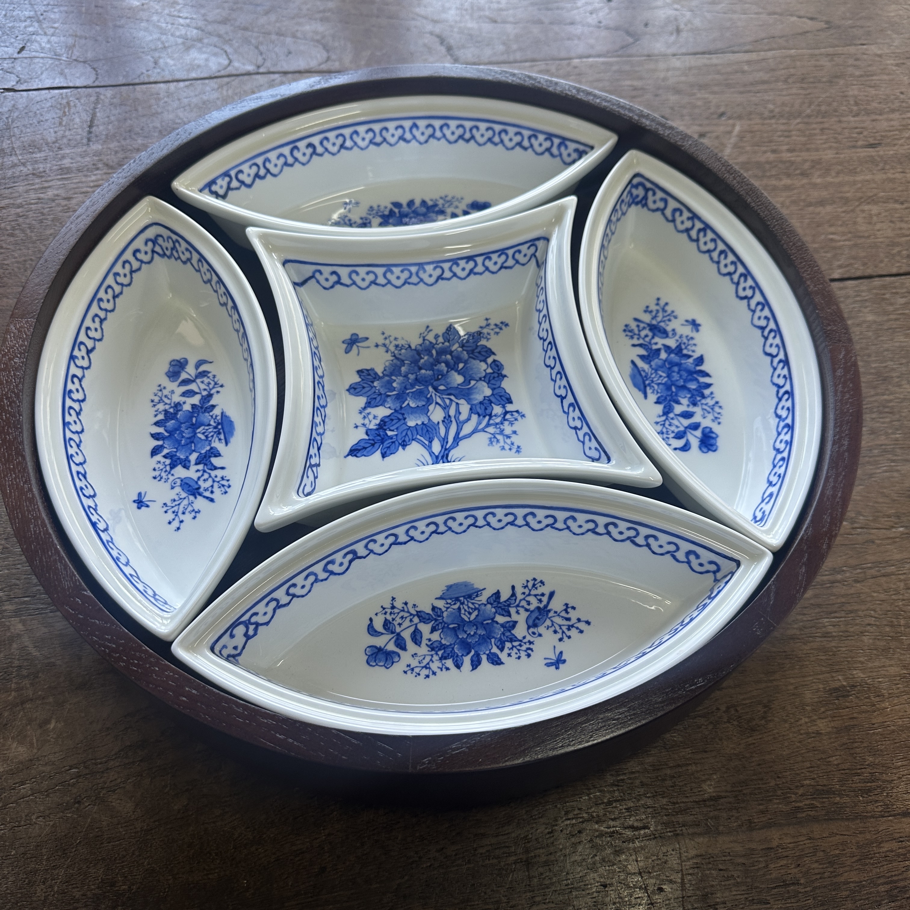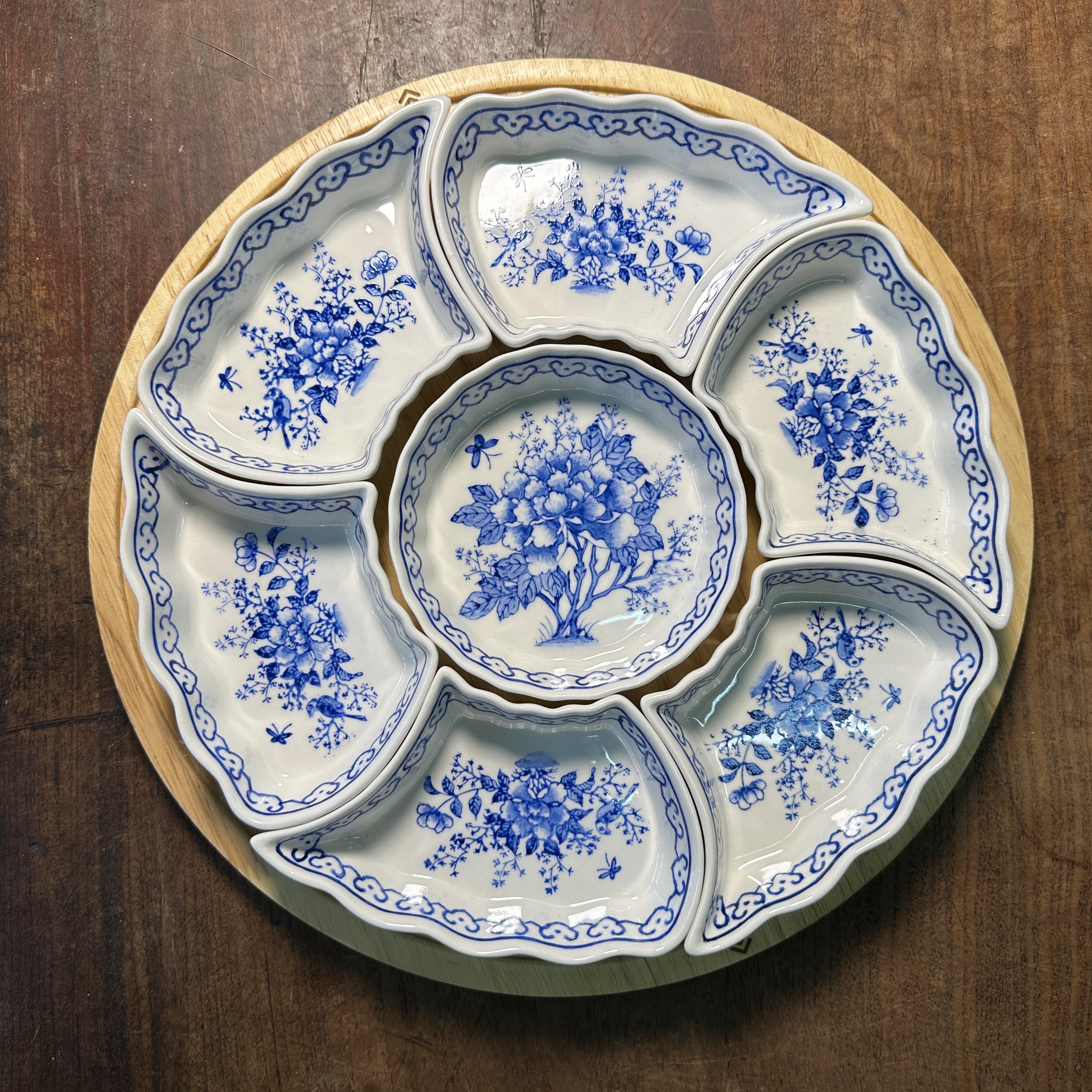 Hand painted blue peony candy tray set 廣彩藍牡丹糖果盤